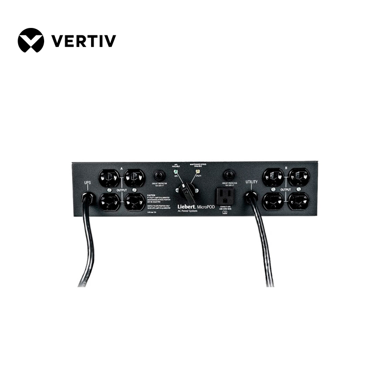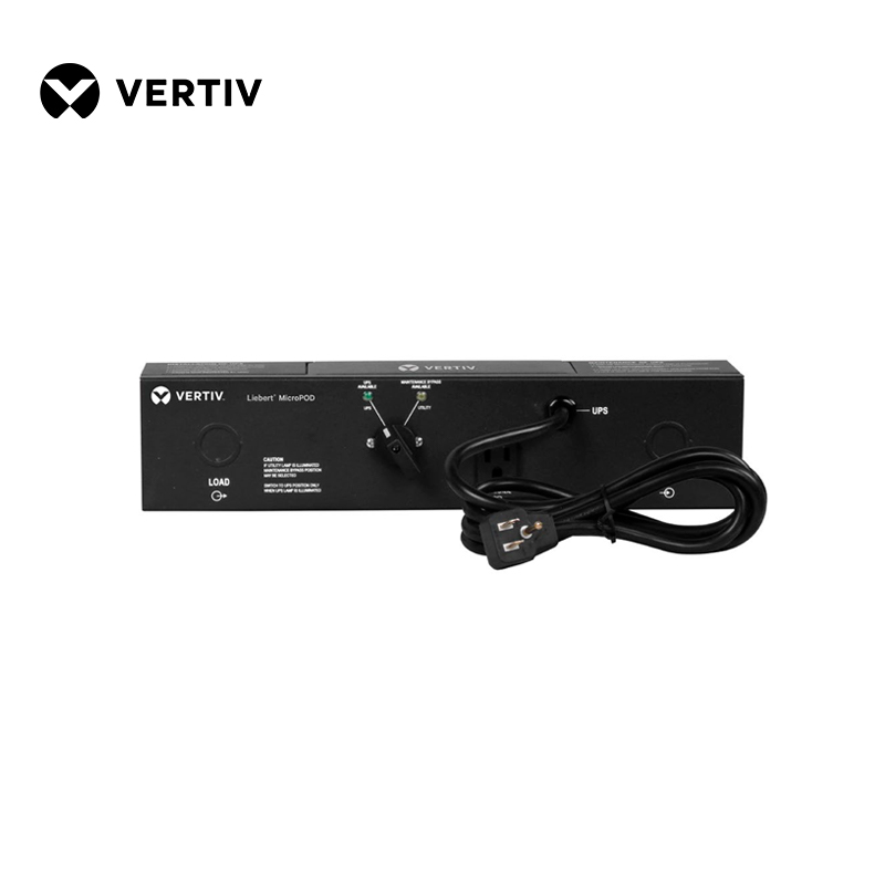 The Liebert MicroPOD provides maintenance bypass capability and output power distribution for Liebert GXT™ and Liebert PSI™ UPS models 3 kVA and smaller, as well as other brands of UPS systems.
