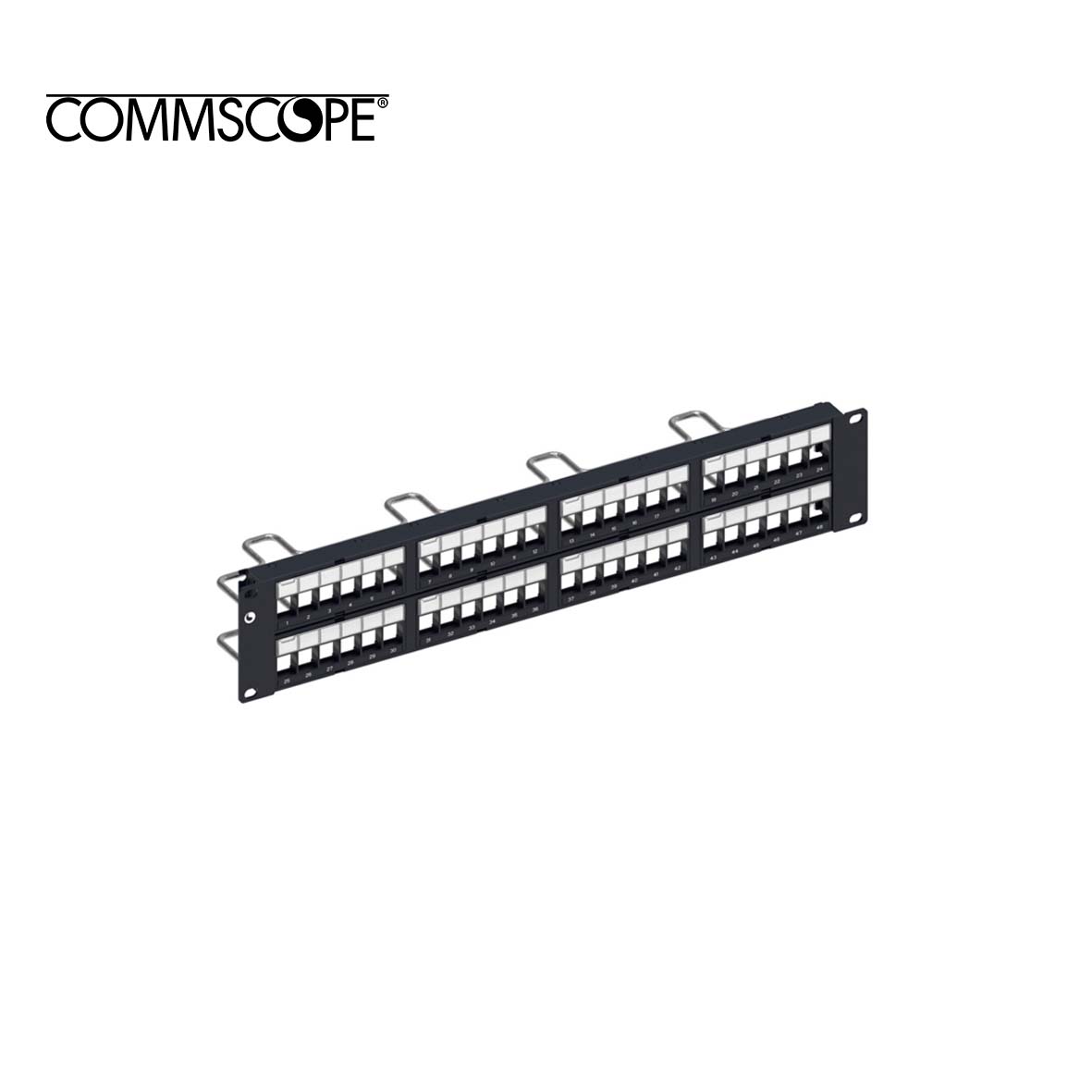 Panel de distribución discreta sin blindaje, SL, 2U, 48 puertos, negro.