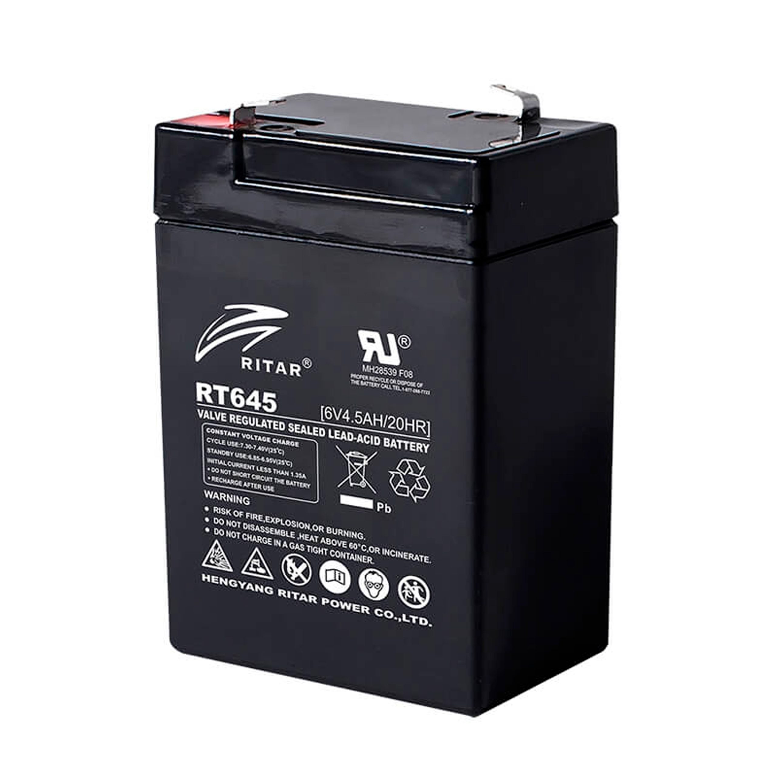 Batería RT645 (6V / 4.5Ah) de impresionante desempeño y extensa vida útil. Cuenta con contactos sellados para evitar la filtración de ácidos, reduciendo la corrosión y extendiendo su vida útil. Con tecnología AGM (Absorbent Glass Mat) obtendrán una duración tres veces mayor a las baterías de plomo convencionales. Se puede montar en cualquier posición, resisten agolpes y vibraciones.