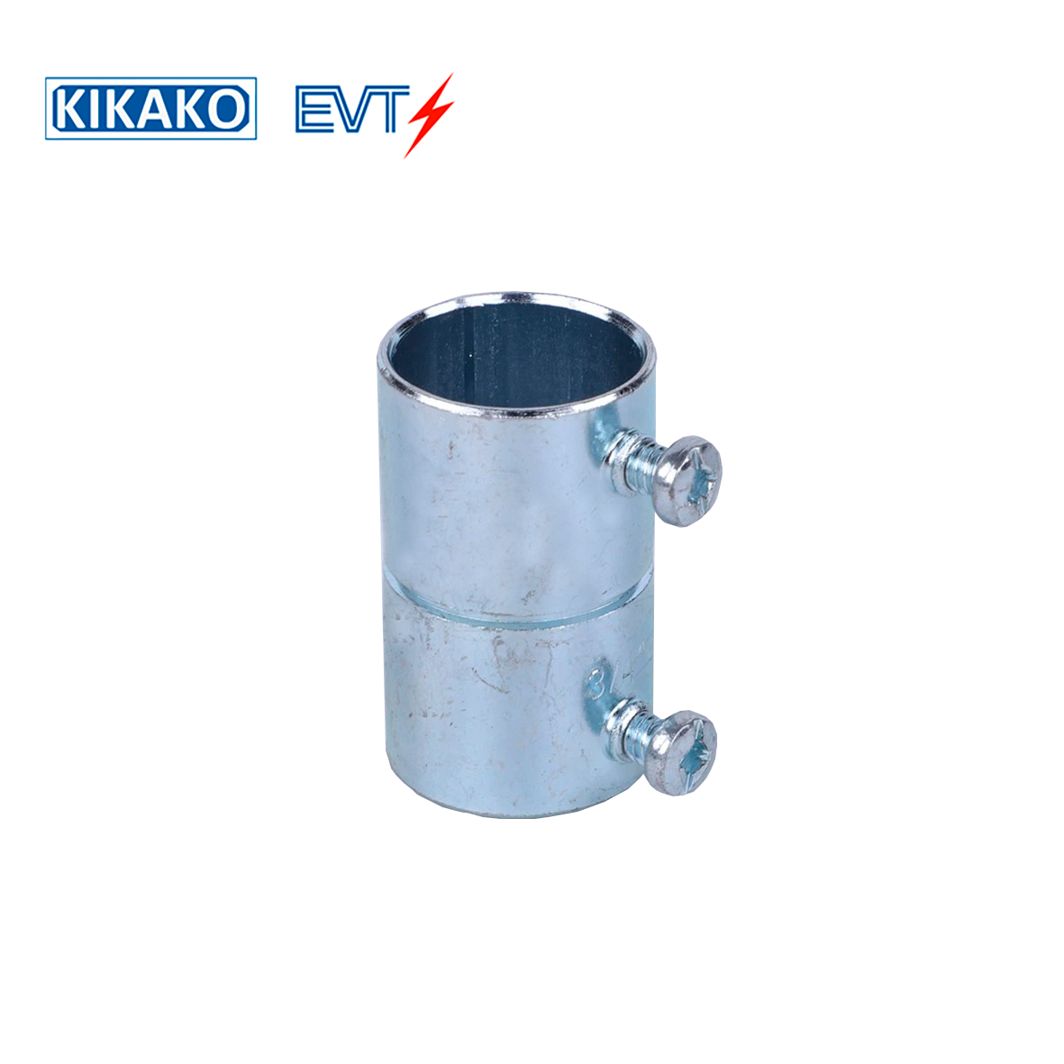 - El acoplamiento EMT de EVT tiene una construcción metálica resistente que garantiza la protección mecánica y la conexión entre un tubo EMT y otro.