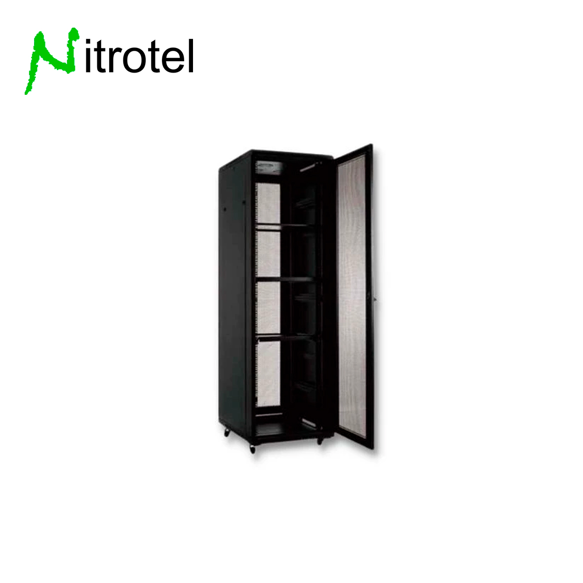 NITROTEL GABINETE DE 12RU 500 x 450, 19″, PUERTA VIDRIO TEMPLADO, COLOR NEGRO