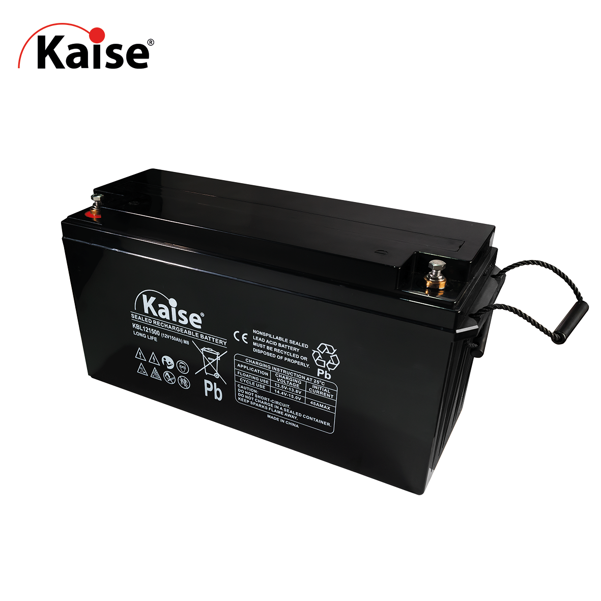 Kaise VRLA battery, high-temperature AGM 12V and 150Ah, 10-year lifespan, front access.