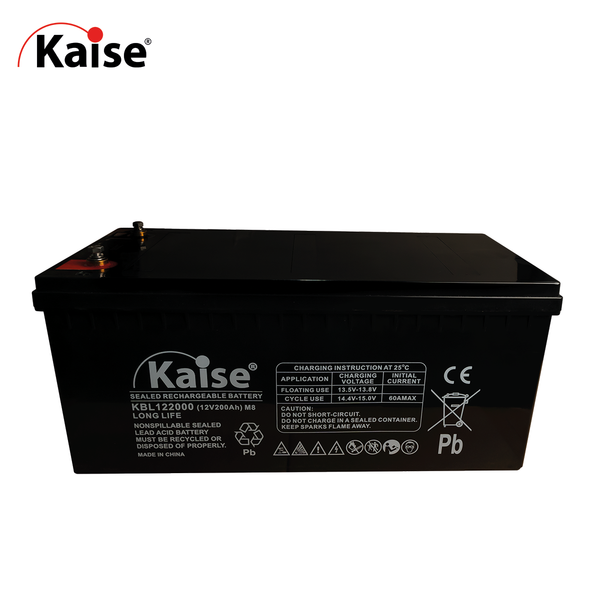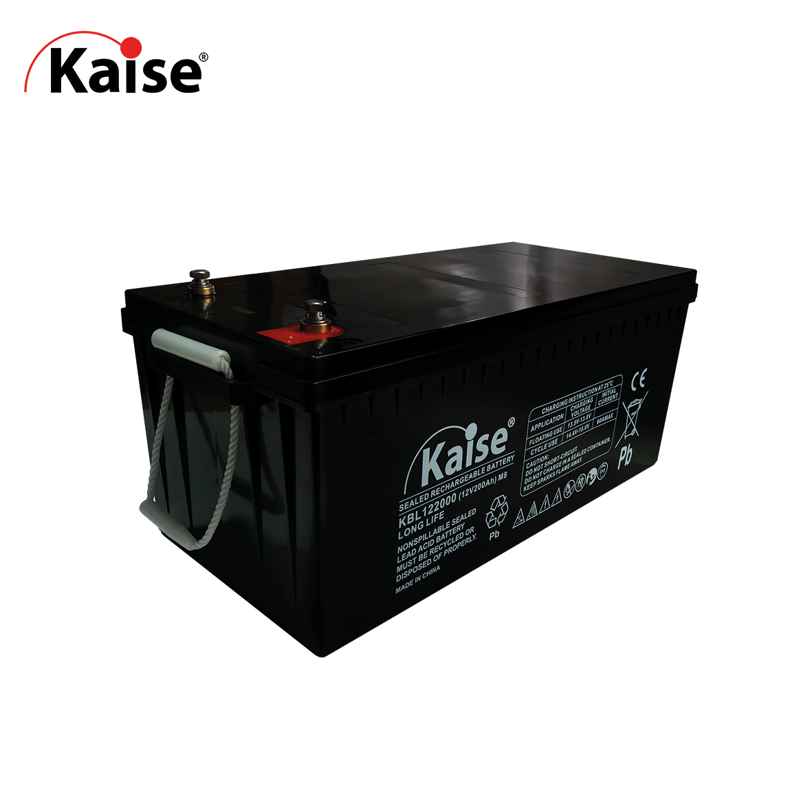 Bateria Kaise VRLA, AGM de altas temperaturas 12V y 200Ah, vida util de 10 años, acceso frontal .