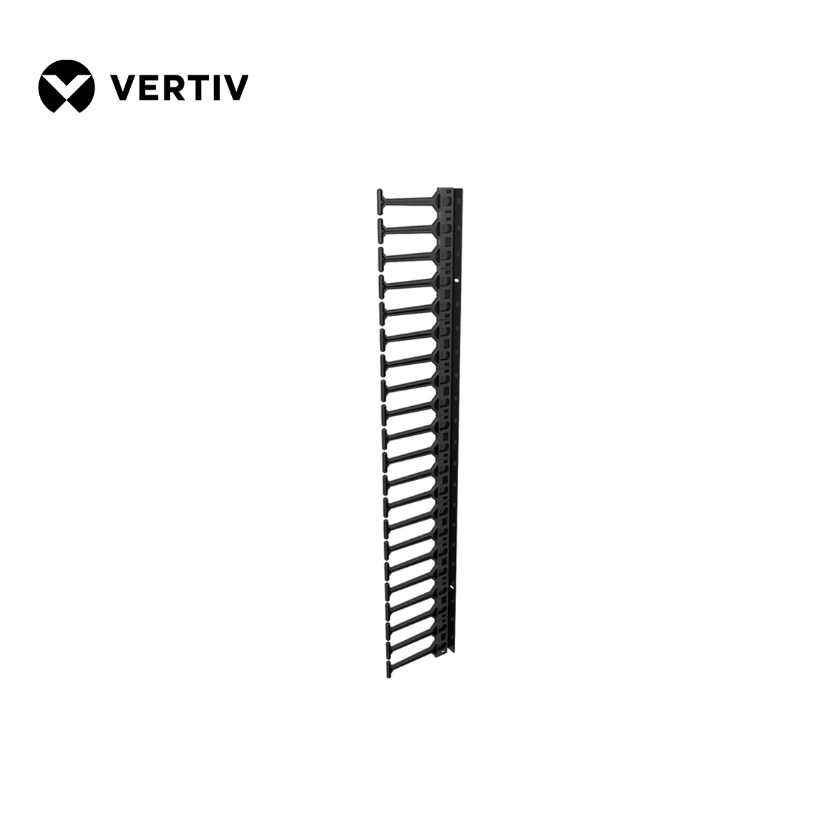 Las secciones de dedos para cables verticales se pueden instalar en rieles de 19″ delanteros o traseros; los dedos se alinean con la marca en «U» para crear canales de cables limpios, lo que proporciona una fila vertical de dedos para la gestión de cables. La versión de 600 mm de ancho tiene una sola fila de dedos verticales, la versión de 800 mm de ancho tiene dos filas.