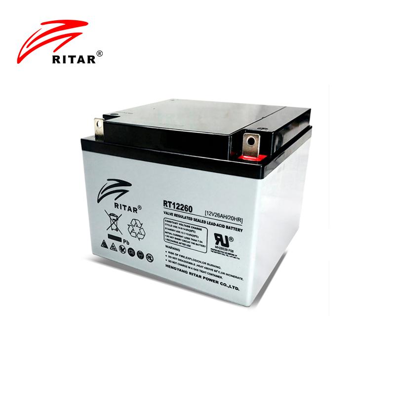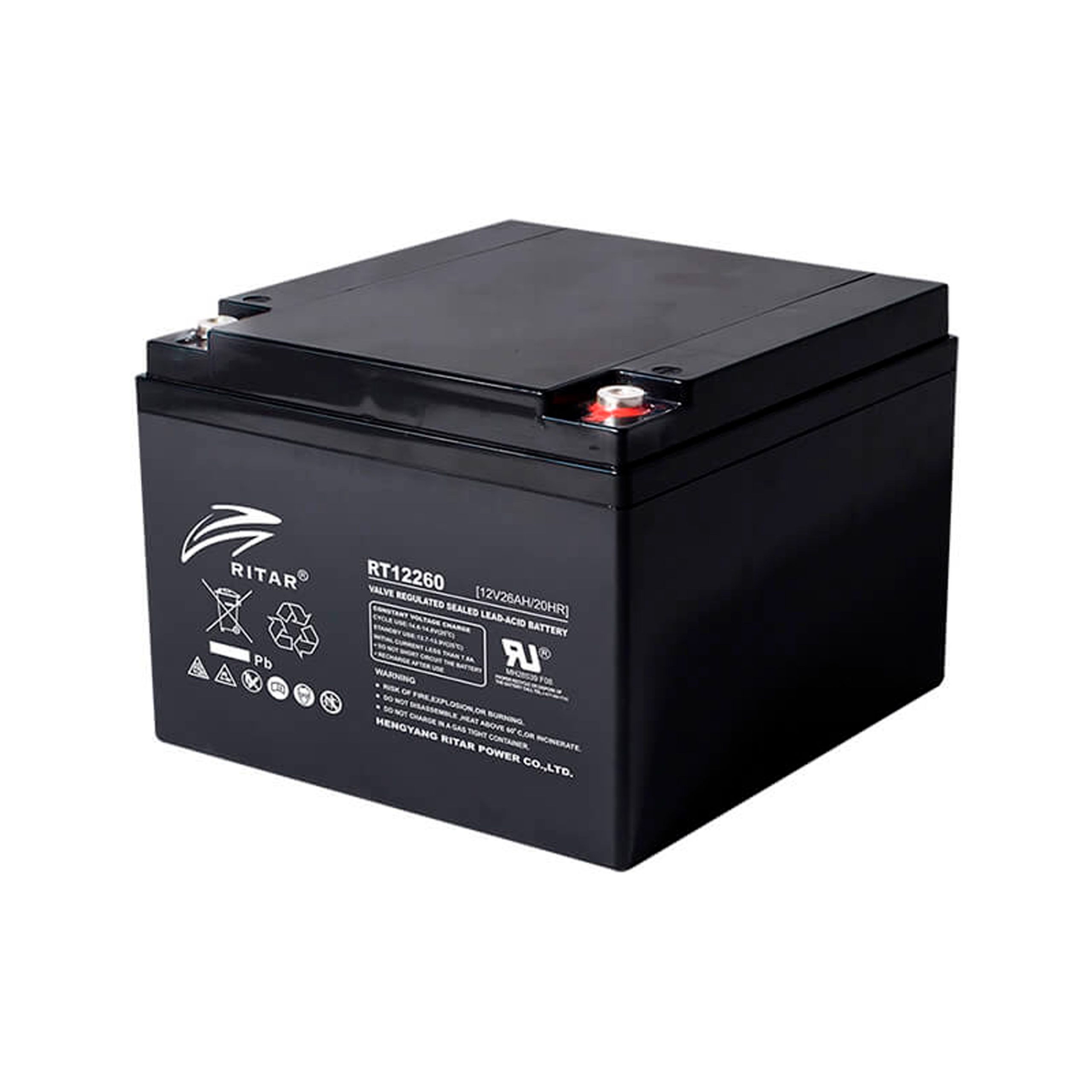 Batería de tecnología sellada AGM (Absorbent Glass Mat) con válvula de regeneración de gases VRLA por lo que no emite vapores inflamables, siendo así la batería más segura del mercado. La batería RT12260 (12V / 26Ah) soporta un gran número de ciclos de descarga y carga (+1.200 ciclos al 30% de descarga). Es por ello, que esta batería es de larga vida útil y muy duradera.