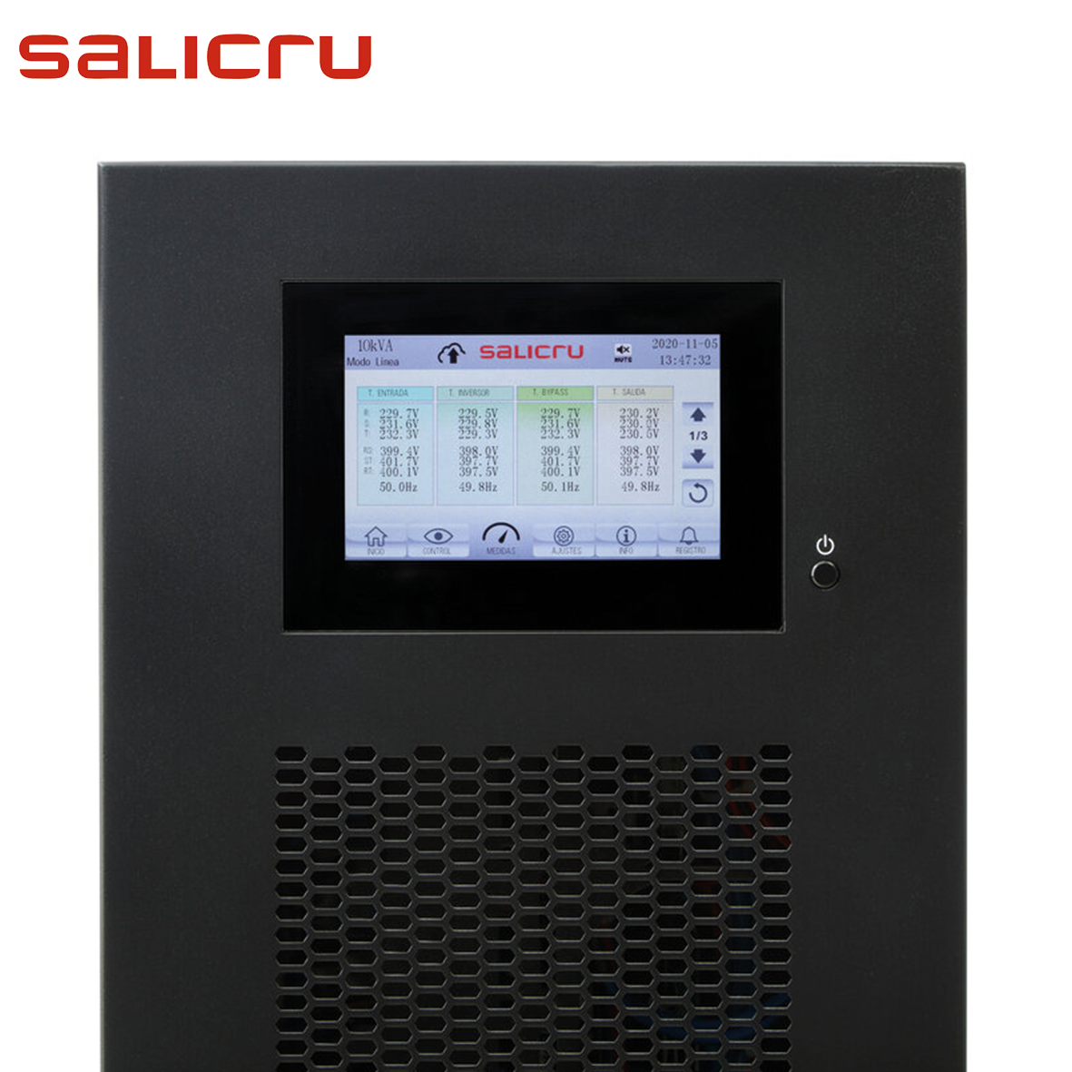 Sistema de Alimentación Ininterrumpida (SAI/UPS) trifásico de 30 kVA con IoT. SIN BATERIAS / PANTALLA TACTIL.